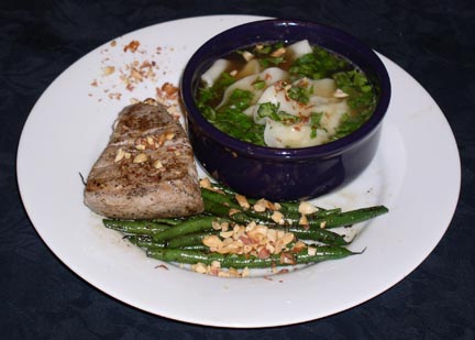 Seared Ahi w/ Green Beans and Dumpling Soup