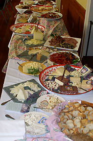 (Addition 2006 - A note to Mountain View locals: Bravo Farms is currently selling its astonishingly good raw milk cheeses at the Farmers' Market every Sunday. Their Silver Mountain dry aged cheese has become one of my all time favorites. Be sure to ask them to reserve a wheel of their two-year aged cheddar for you. It's scrumptuous.) Raw Milk Cheese by Robert Rich, September 2003, for MV Voice Artisan cheesemakers seek new traditions Imagine a crumbly savory Reggiano Parmesan cheese, grated fresh atop a steaming plate of pasta; or a creamy Swiss Ementhaler melted decadently in a fondue; or a crisp pear and walnut salad sprinkled with the tangy sharpness of Roquefort blue. If you have tasted these flavors, you have almost certainly eaten a raw milk cheese. Many of the greatest traditional cheeses of Europe are still made with unpasteurized milk, and a growing number of American cheesemakers have been asserting their right to make raw milk cheese as well. This new generation of American cheesemakers has been striving to match and surpass the quality of the best handmade cheeses of Europe. From the local cheese that I have tasted recently, I think they're succeeding. Artisan cheesemakers often feel that naturally occuring microorganisms inside the raw milk help their cheese develop more complex flavors while imparting local and seasonal uniqueness. By essentially killing the milk through Pasteurization, then re-innoculating it with cultured bacteria, they feel that industrialized cheesemaking destroys a cheese's personality. 60 Day Rule Since the 1940's, FDA regulations have allowed the use of raw milk in cheesemaking, provided that the cheese ages longer than 60 days before distribution. The aging process changes the chemical environment within the cheese, making it harder for pathogens like e. coli and listeria to survive. Dry, hard cheeses are the safest. Generally, soft cheeses like brie and camembert age less than 60 days, and their high moisture content provides a more hospitable environment for bacteria to grow. For this reason, importers cannot legally sell European raw milk soft cheeses in America, lofting these traditional foods into the cult status of illegal contraband. Even the Wall Street Journal wrote about the growing black market cheese culture (June 10, 2003: "Hey, Wanna Buy Some Cheese" by Katy McLaughlin.) Myths The growing visibility of raw milk cheese has helped spread several myths, both for and against its consumption. The topic is complex enough that even trained health professionals have unwittingly spread conflicting advice, only to fan people's fears. Many people repeat the advice that pregnant women should not eat raw milk cheese, for fear that bacterial infection will lead to complications. In fact, raw milk cheeses that have aged longer than 60 days probably pose less of a hazard to pregnant women than soft cheeses made from Pasteurized milk. Dr. Moshe Rosenberg, professor of food science at U.C. Davis, recommends that pregnant women and people with impared immunity should avoid any soft cheeses, even if pasteurized, since pathogens can easily be introduced into soft cheese after the pasteurization process, during handling, packaging and distribution. One critical study by C.W. Donnelly at the University of Vermont compared incidents of illness resulting from cheese, seeking patterns resulting from unpasteurized milk. Donnelly found that many more bacterial infections occured from mis-handling during manufacture than from bacteria present in raw milk. Donelly concluded: "Aged raw milk cheeses have enjoyed a remarkable safety record. This review did not find any compelling data to indicate that mandatory pasteurization would lead to a safer product." Of course, non-pregnant people with healthy immune systems have little to fear from soft cheese. Runny cheese poses far less risk than sushi, raw oysters, or steak tartar. Cheese Politics "I used to think we were fighting the big conglomerates, but I don't think that anymore" says Debra Dickerson of the American Cheese Society. Dickerson led a task force dedicated to preserving the 60 day aging rule, working with the FDA and WTO to allow cheesemakers to continue using raw milk. "We needed to make our voice heard. They were debating the issue in terms of large commercial production only, not considering the advantages of small production from local, farm produced milk. Microbiological hazards are reduced when the milk goes from beast to cheese in a minimum of time. We focus on exceptional quality and flavor instead of quantity and low price." Dickerson has a refreshing non-confrontational attitude. "The FDA has been patient and helpful. We just wanted to make sure they didn't change the laws, which have worked well since the 1940s." Raw, Thermized, Pasteurized Some cheesemakers use a compromise between raw and Pasteurized, called thermization. This involves heating the milk at lower temperatures (145-149F for 15 sec.) than the Pasteur method (which requires 160F for 15 sec or 145F for 30 min.) Thermizing kills most bacteria, but preserves more of the original flavor than true Pasteurization. The law considers thermized cheese to be unpasteurized. Labelling practices do little to clarify the differences. A raw or thermized cheese might simply list "milk" as the first ingredient, or it might highlight "organic raw milk". French labels might list "au lait cru" or perhaps imply traditional techniques with an AOC stamp. What's a buyer to do? Ask at a reputable cheese shop, of course. Buying and Storing Cheese Debra Dickerson currently represents two excellent artisan cheese companies, Redwood Hill Farm in Sebastopol and Neal's Yard Dairy in the UK. She recommended these tips when shopping for fine cheese: Dickerson's advice dovetails with some wisdom from Professor Moshe Rosenberg about storing cheeses: Ideal storage conditions vary by cheese type. Fresh, unripened cheeses (like young chevre) spoil quickly. Store these c